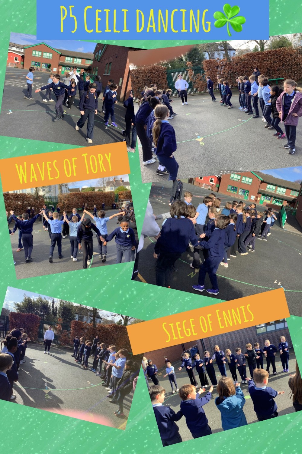 P5 were treated to a fantastic session learning two Céilì Dances from our St. Mary’s student teacher, Mr Donnelly. We learned the steps to the Waves of Tory and the Siege of Ennis. Both dances involved lots of concentration and team work to make sure we all ended up at the correct start and end point….it was a little tricker than we imagined! Super dancing P5 ☘️