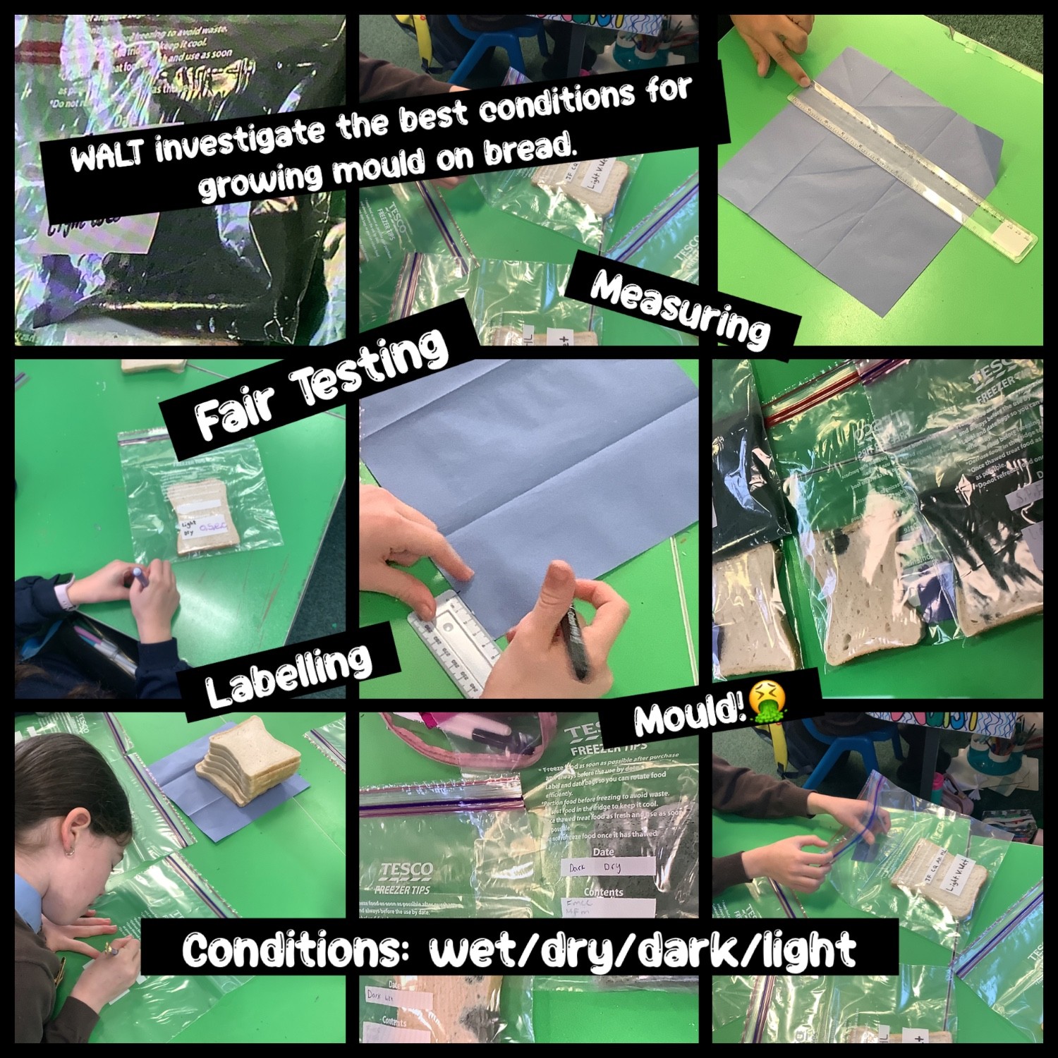 Linked to their work in World Around Us, P7 built upon their knowledge of micro biology in Victorian times to examine the best conditions for growing mould on bread.