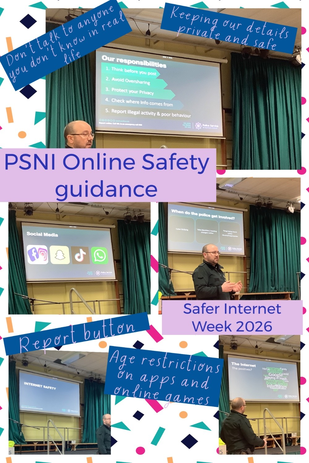 As part of our preparations for Safer Internet Week 2026, the PSNI came into school to speak with P5-7 pupils about staying safe online. Officers led an age- appropriate discussion on recognising risks, protecting personal information and making smart choices when online. Their visit has helped reinforce the importance of responsible digital behaviour and encouraged pupils to think about how they interact with others in online spaces.