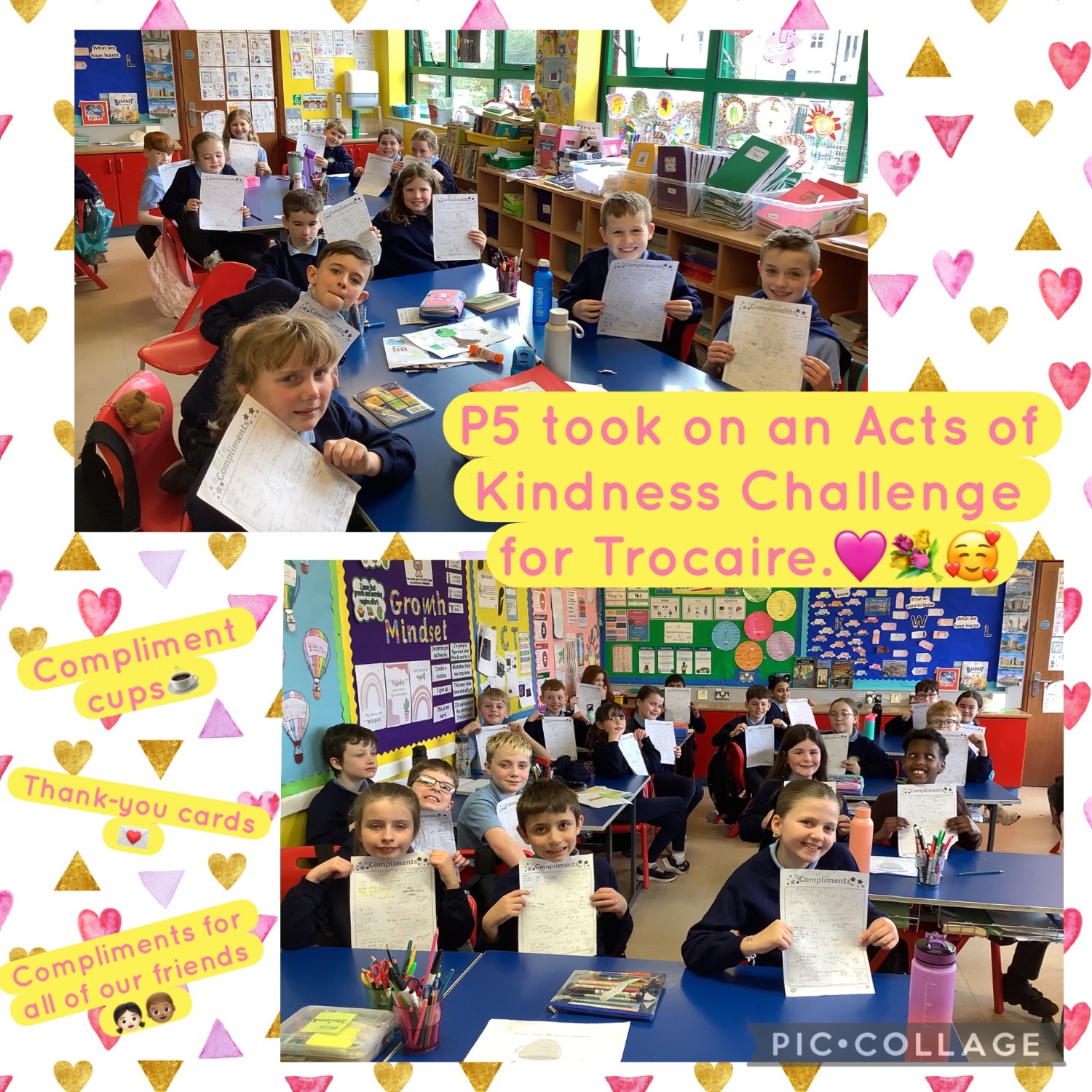 P5 took on an Acts of Kindness Challenge to raise money for Trocaire!💕 We all shared some beautiful compliments!☕️💖 Thank you so much for all of your generous donations!🥰
